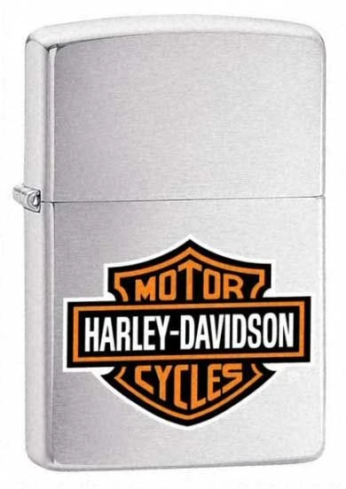 Chrome Zippo lighter with Harley Davidson logo printed on the front.