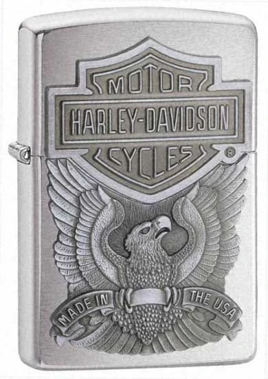 Chrome zippo lighter with raised Harley Davidson Eagle. Made in the USA emblem.