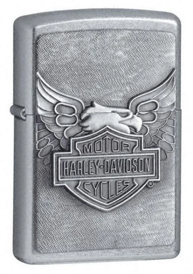 Street chrome Zippo lighter with raised Harley Davidson logo emblem.