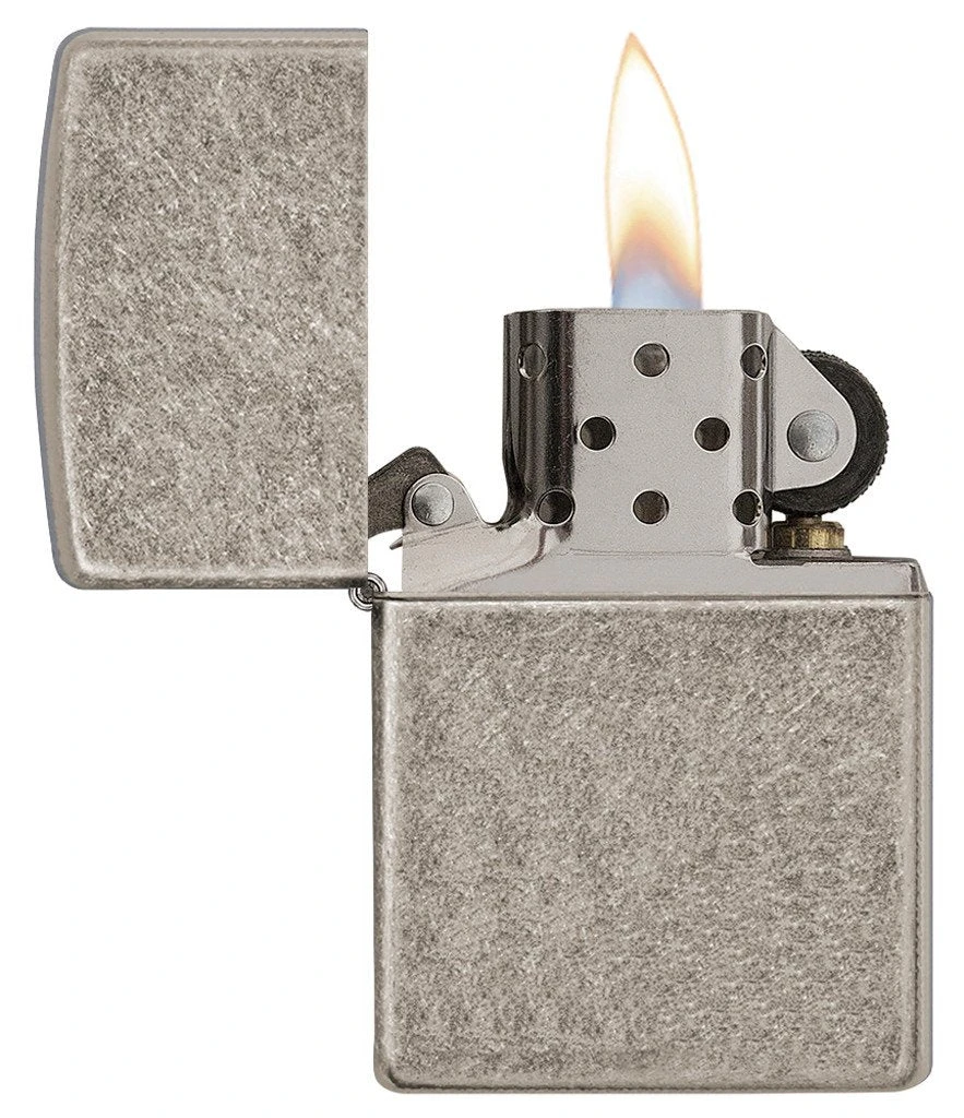 - Genuine Zippo windproof lighter with distinctive Zippo “click”