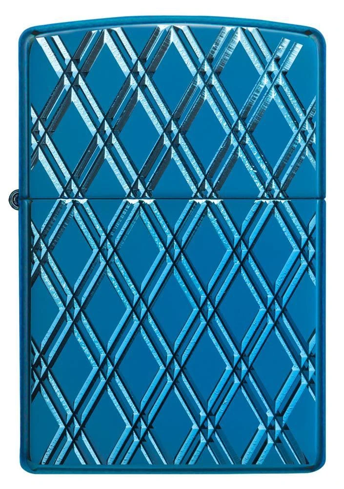 Deep carve and MultiCut treatments are dazzling on this high polish lighter, adding even more vibrant flashes of colour. This Armor® High Polish Blue lighter has been deep carved on the front and back sides, creating an elegant jacquard diamond pattern. Comes packaged in a gift box. For optimal performance, fill with Zippo lighter fuel.