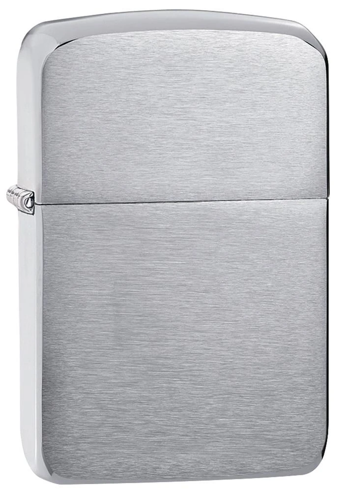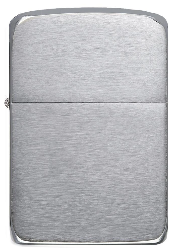 This Brushed Chrome Replica lighter is a popular model. The case has flat planes with sharper, less rounded edges where the front and back surfaces meet the sides. Lid and the bottom are joined with a four-barrel hinge. Inside unit is flatter, with squared edges where they meet the front and back surfaces meet the sides. Comes packaged in a gift box. For optimal performance, fill with Zippo lighter fuel.