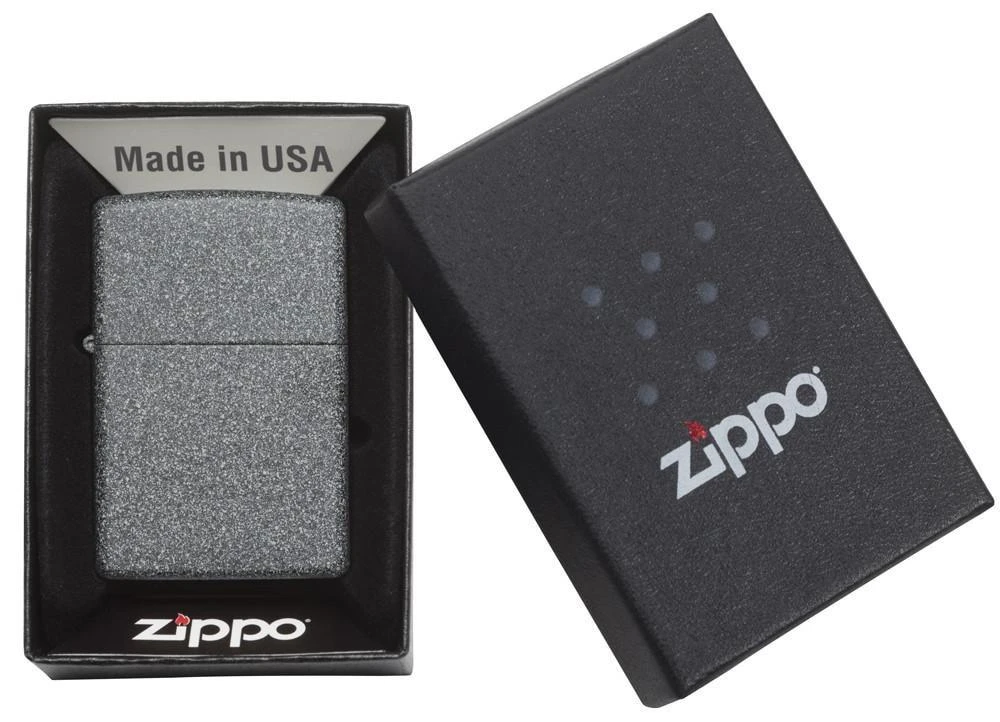 - Genuine Zippo windproof lighter with distinctive Zippo “click”