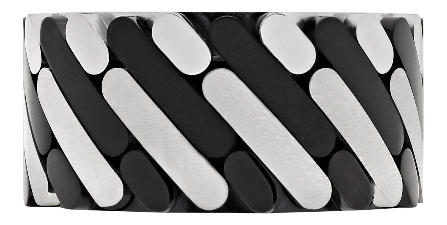 Express yourself with a Zippo accessory! Fine exclamation marks in black and silver are detailed on this stainless steel ring. The line is made of brushed steel and the dot is made of polished steel. A great match from this indestructible material. The rind also features the Zippo logo embossed on the inside.
