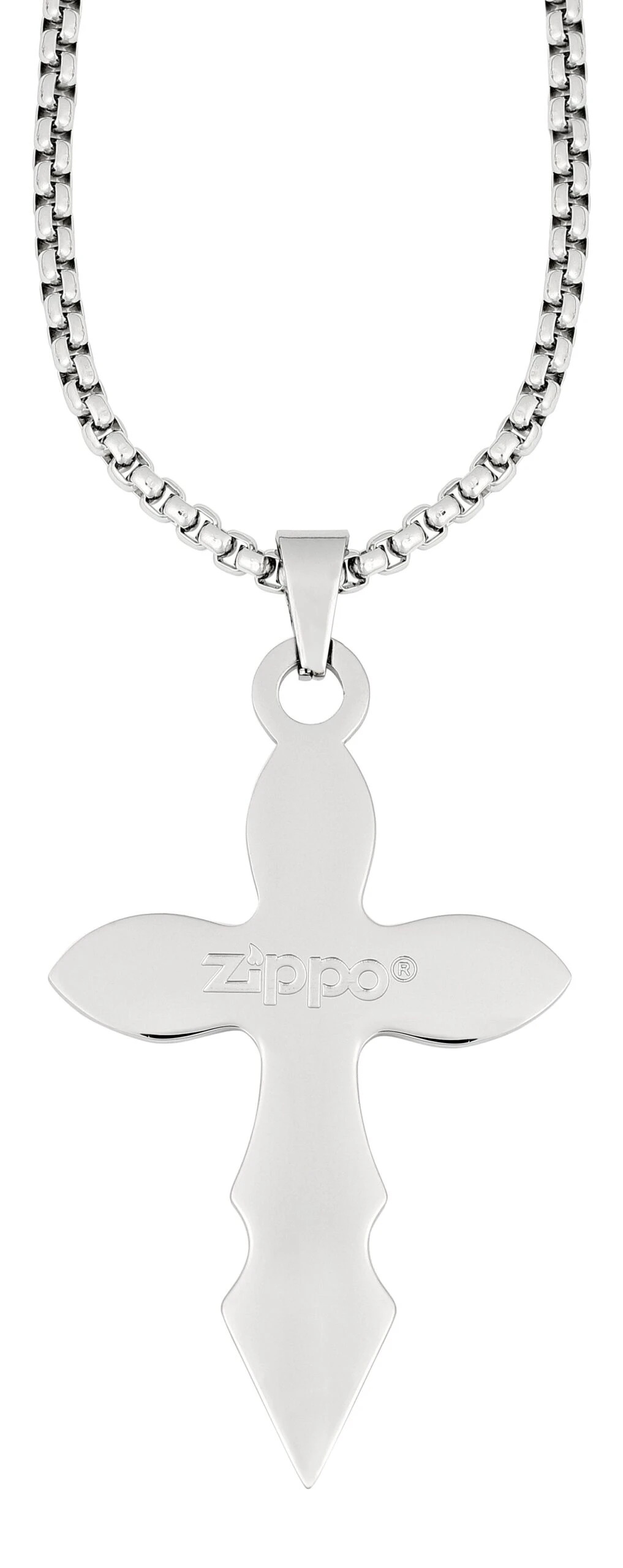 In its history, the cross as a symbol has a religious or cultural significance in particular. A modern, new interpretation is offered by the pendant with chain in cross form made of stainless steel in a colour combination of silver and gold. The Zippo logo is embossed on the back.