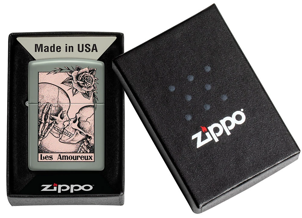 - Genuine Zippo windproof lighter with the unmistakable Zippo “click”.