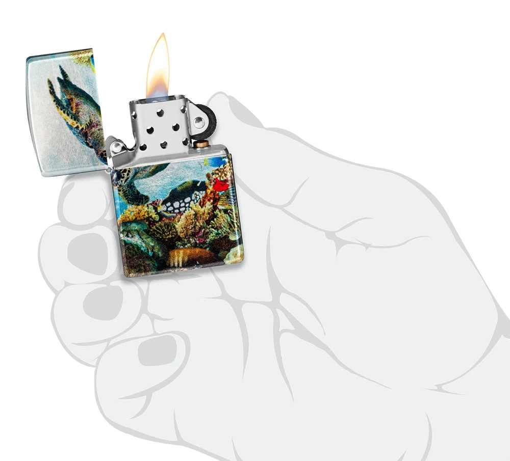 A dazzling underwater scene surrounds all sides of this 540 Fusion lighter, while shimmering chrome tones of the lighter’s case complement the immersive design.Â