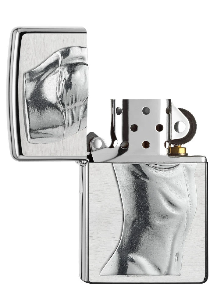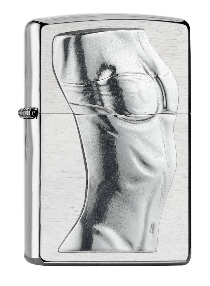 Inspired by the masterpieces of Renaissance sculptors, this Brushed Chrome lighter features an anatomical representation of the human form on an intricately detailed metal emblem.
