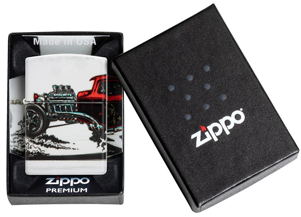 - Genuine Zippo windproof lighter with distinctive Zippo “click”