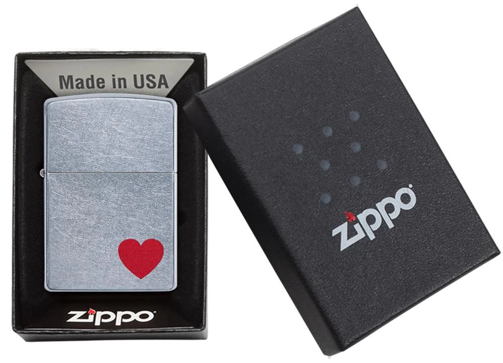 Red as love – the little heart on our Zippo lighter. Comes packaged in a gift box. For optimal performance, fill with Zippo lighter fuel.