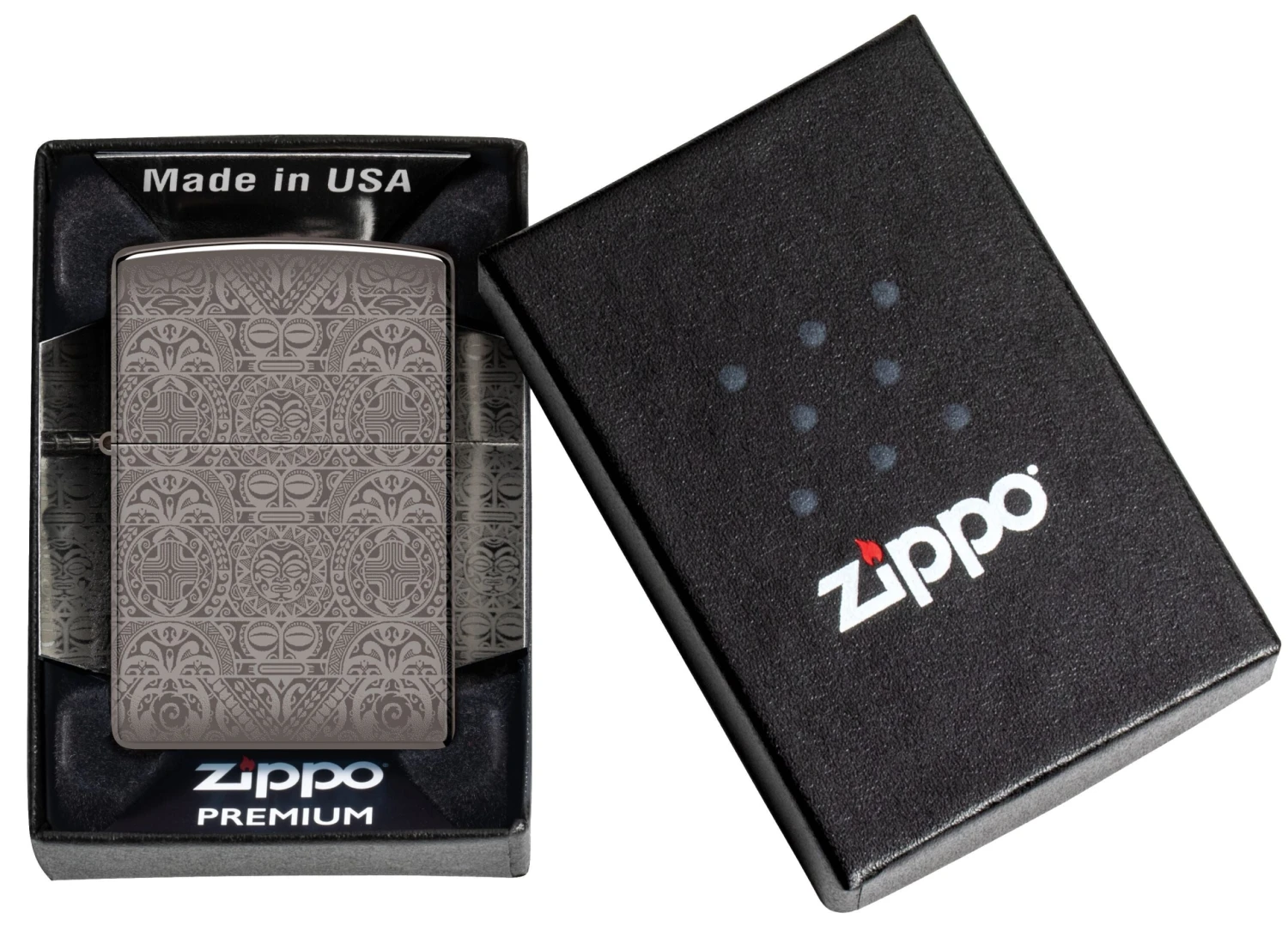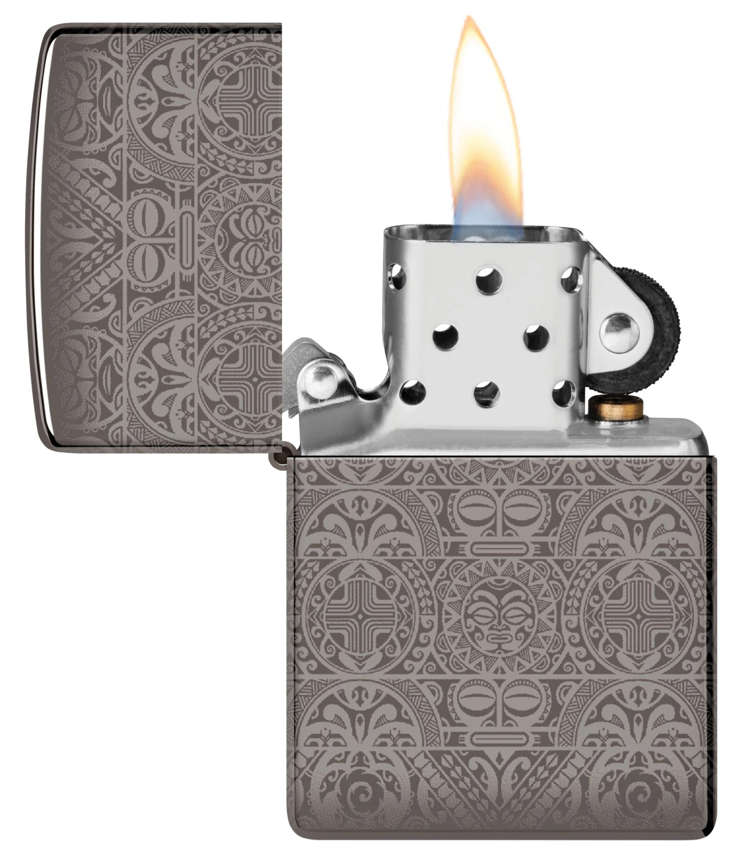 Inspired by traditional art, this stunning Black Ice® lighter is surrounded by Maori tatoo artwork in a subtle and seamless Laser 360° design.