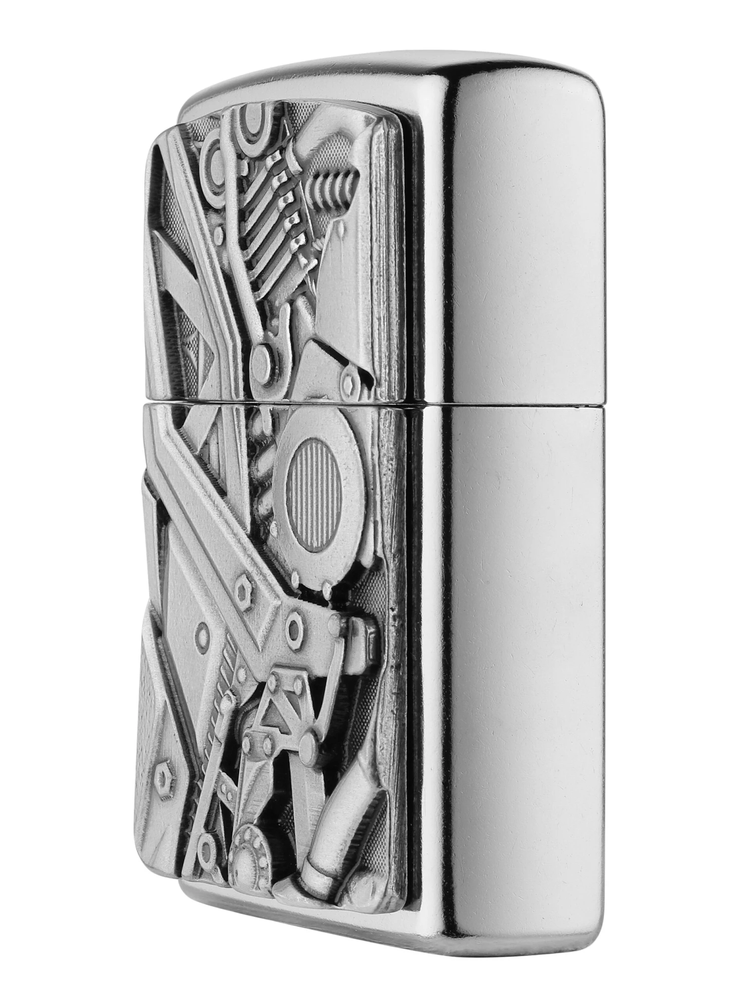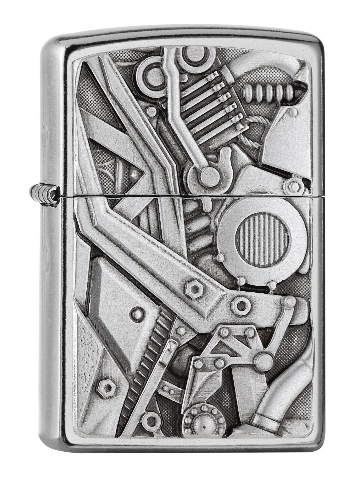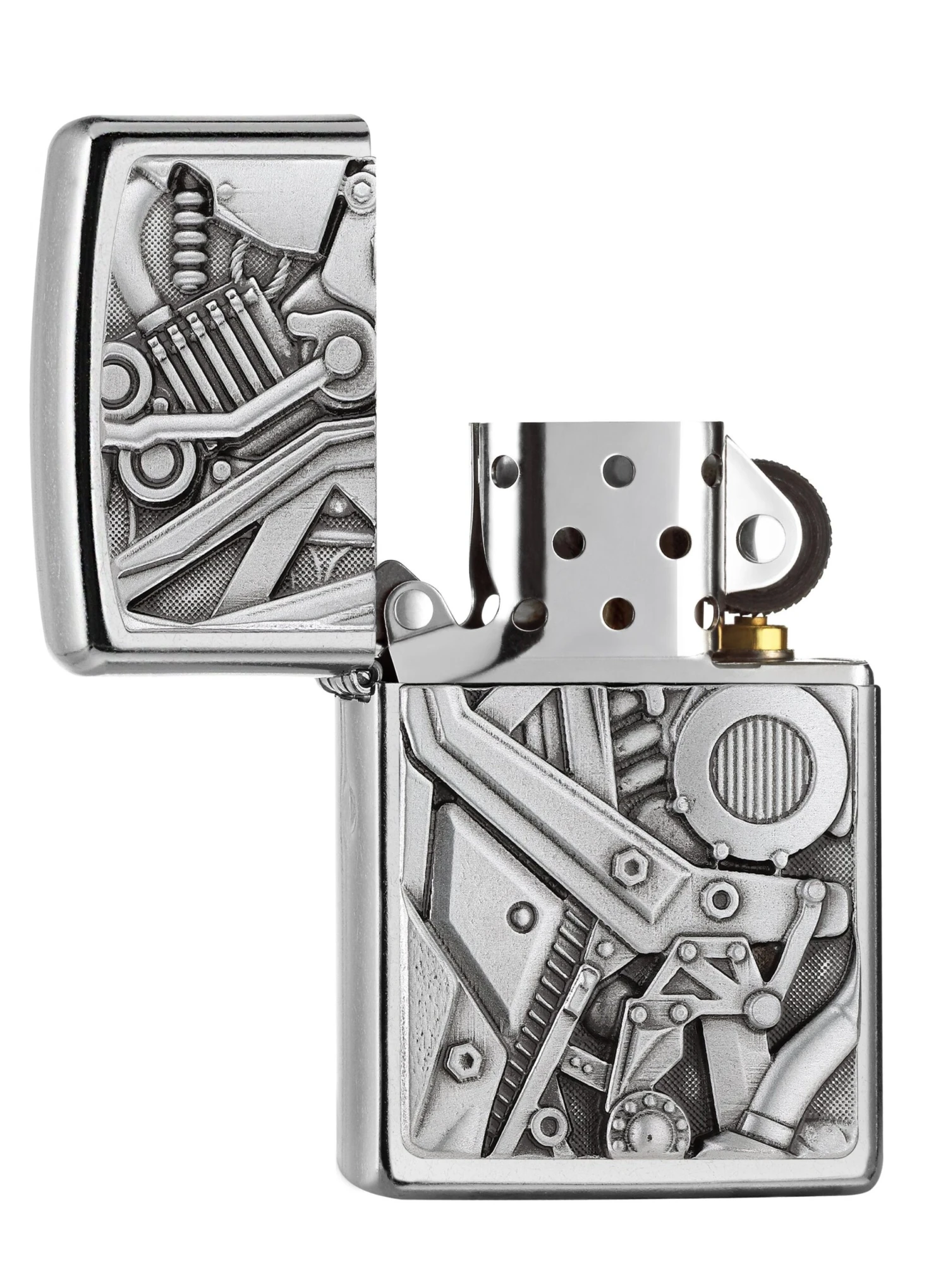 Under the engine cover of a motor bike you’ll find the very heartbeat of the machine. An Engine under the microscope! An eye-catching Emblem design on a Street Chrome lighter. Comes packaged in a gift box. For optimal performance, fill with Zippo lighter fuel.