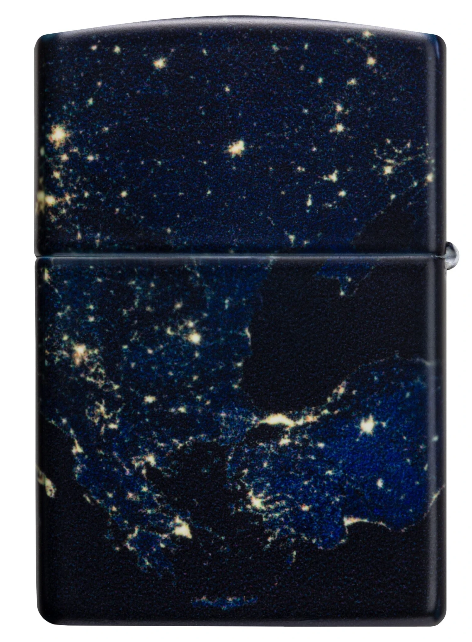 Night on Earth is captured on all sides of this gorgeous 540 Color lighter. The soothing aerial scene is treated with our specialty Glow-in-the-Dark process for added allure.
