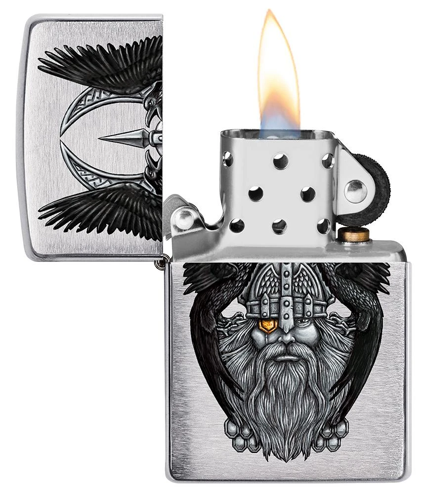 Odin, also known as Wodan, is the father of the gods in Nordic mythology. He is also considered the god of war. Comes packaged in a gift box. For optimal performance, fill with Zippo lighter fuel.