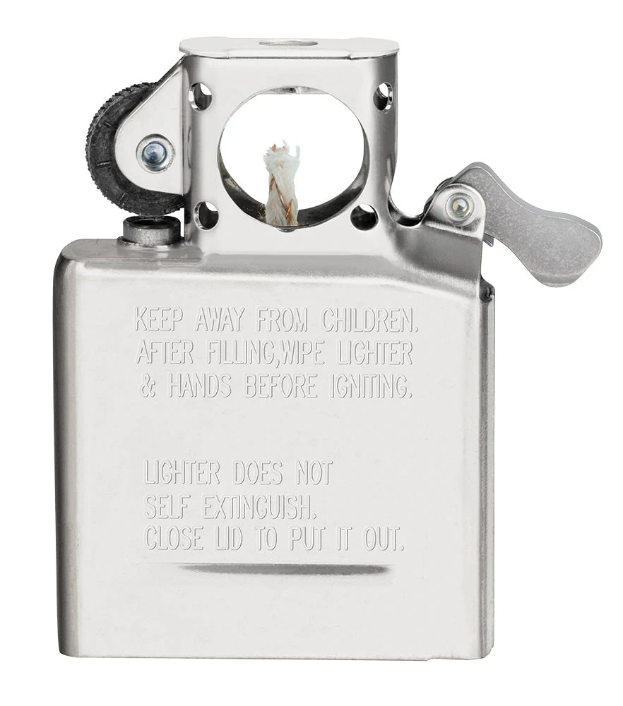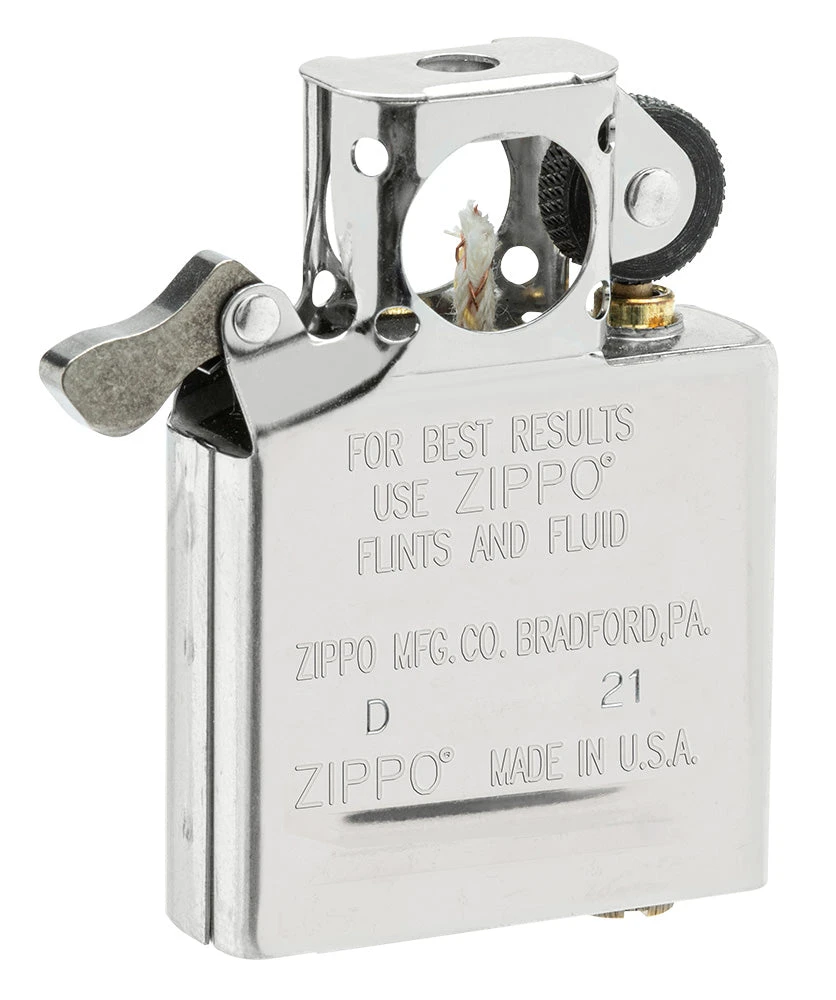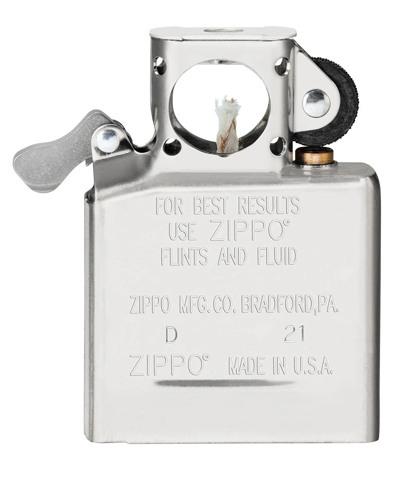- Genuine Zippo windproof lighter insert with the distinctive Zippo “click”.