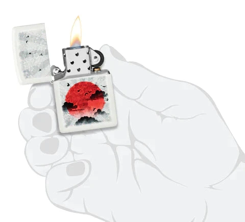 A gorgeous watercolor moon blazes behind a delicate floral motif on this classic White Matte lighter. A few lingering clouds and whimsical birds punctuate the serene Color Image design.