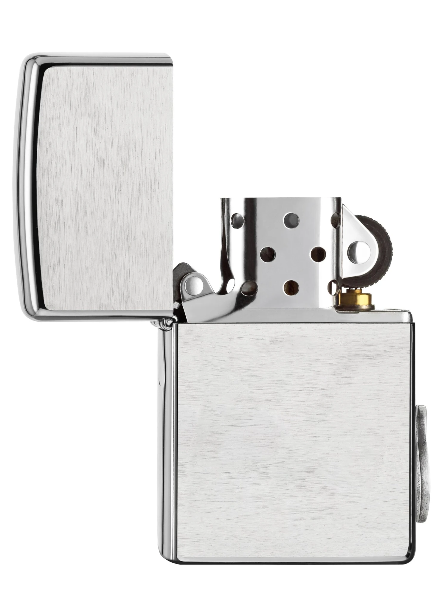 - Genuine Zippo windproof lighter with distinctive Zippo “click”