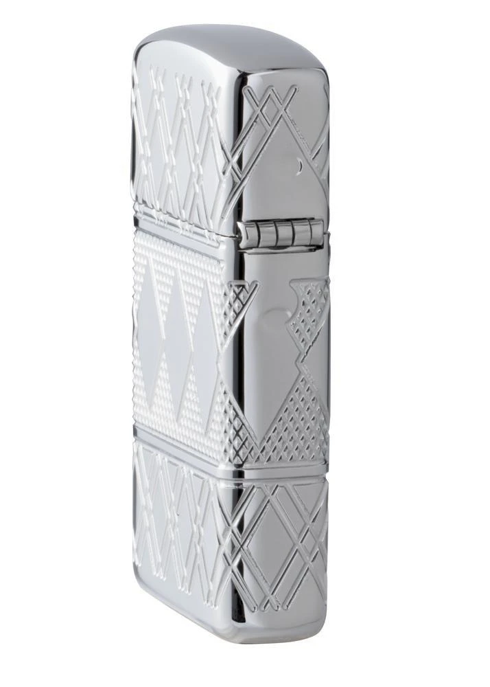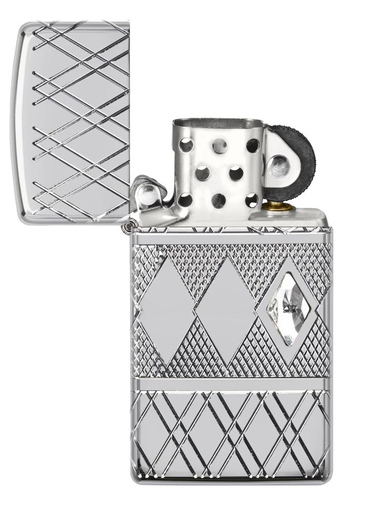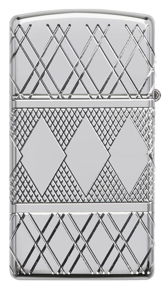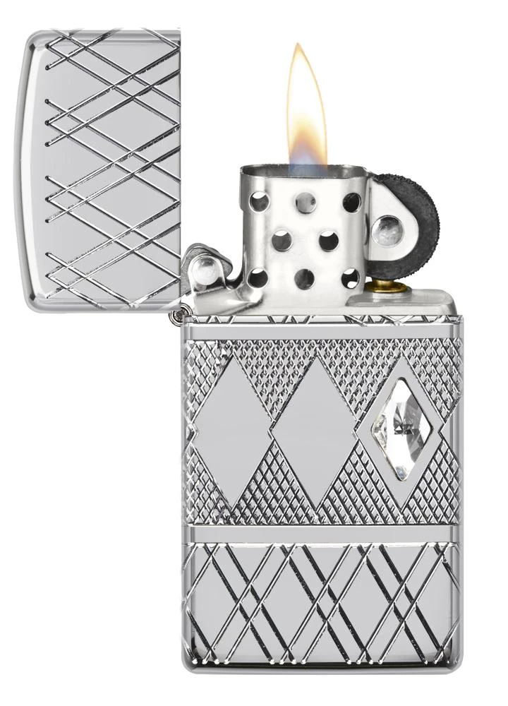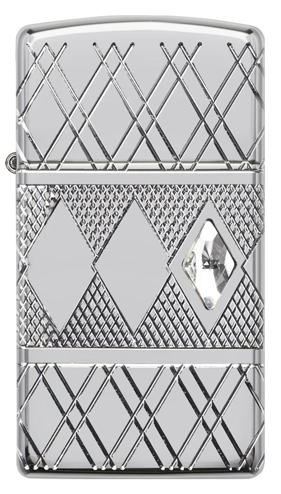 In another Zippo first, the MultiCut process debuts on a Slim® Armor® High Polish Chrome lighter. The elegant diamond patterned band that encircles the middle of the lighter features a solitaire crystal accent. Comes packaged in a gift box. For optimal performance, fill with Zippo lighter fuel.