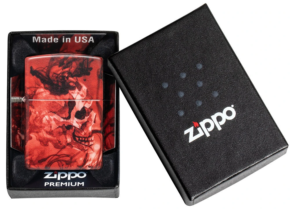 - Genuine Zippo windproof lighter with distinctive Zippo “click”