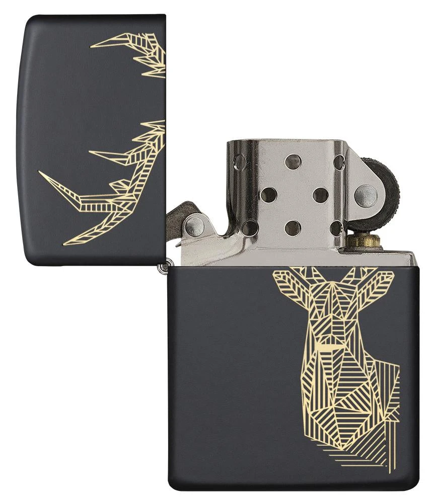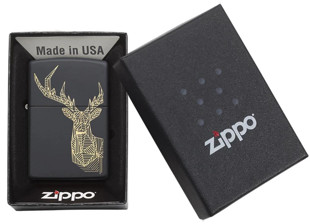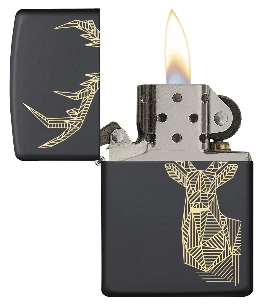 The proud Stag stands tall. A detailed geometric colour image design on a black matte lighter. Comes packaged in Zippo’s premium box. For optimal performance, fill with Zippo lighter fuel.