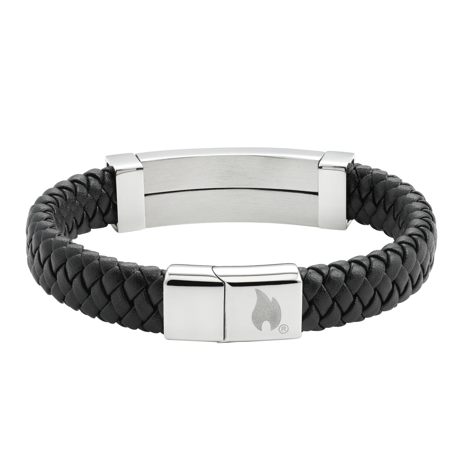 Stylish double braided leather strap with flat stainless steel magnetic clasp. The ends of the bracelet are simply slid into each other. The High Polish clasp ensures a secure hold. The original Zippo logo adorns the inside of the clasp.Â