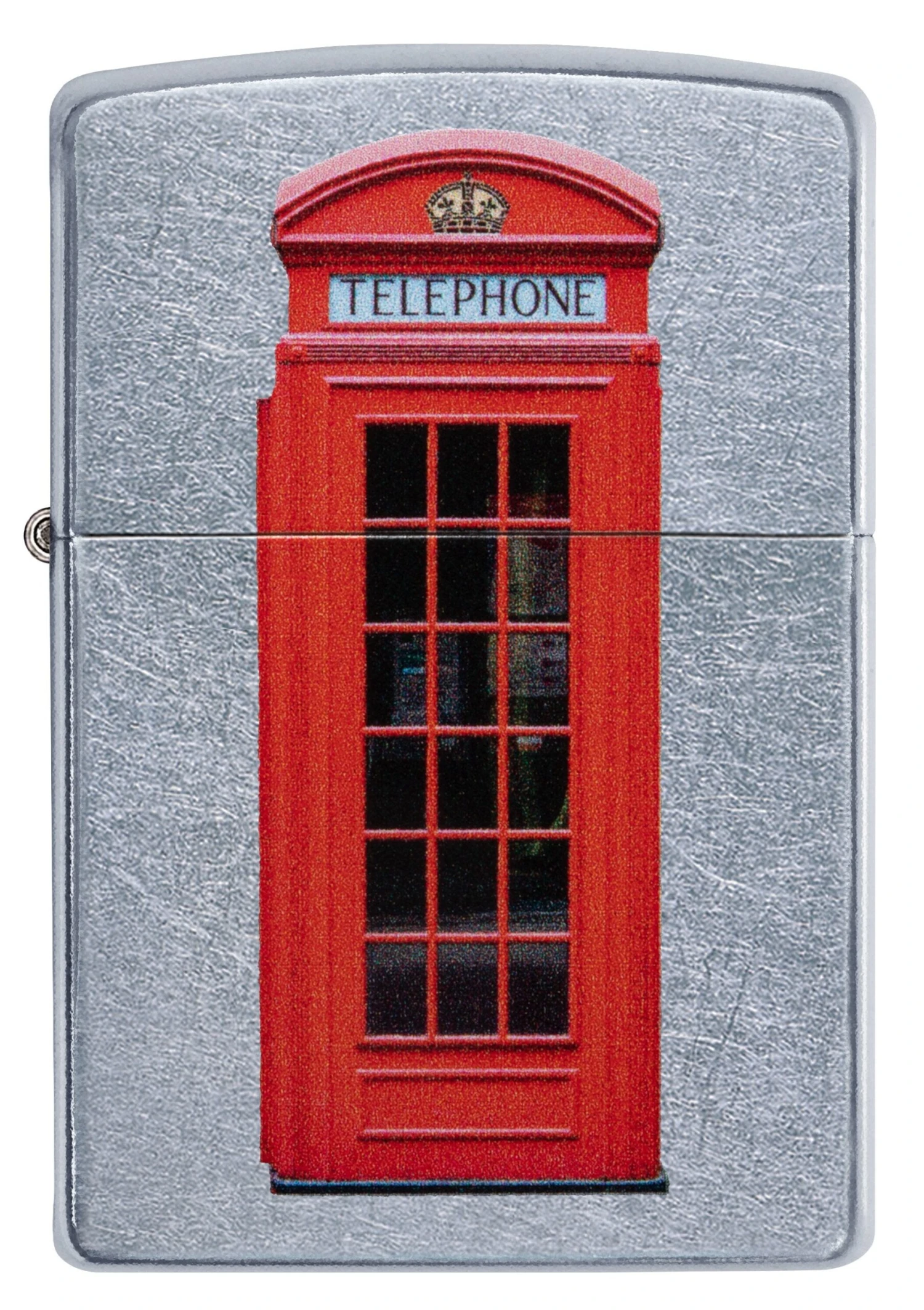 The iconic red Telephone Box, first introduced to Great Britain and British colonies around the world in 1921. The red phone box is often seen as a British cultural icon around the world. An eye-catching design on a Street Chrome Windproof Lighter. Comes packaged in a gift box. For optimal performance fill with Zippo lighter fuel.