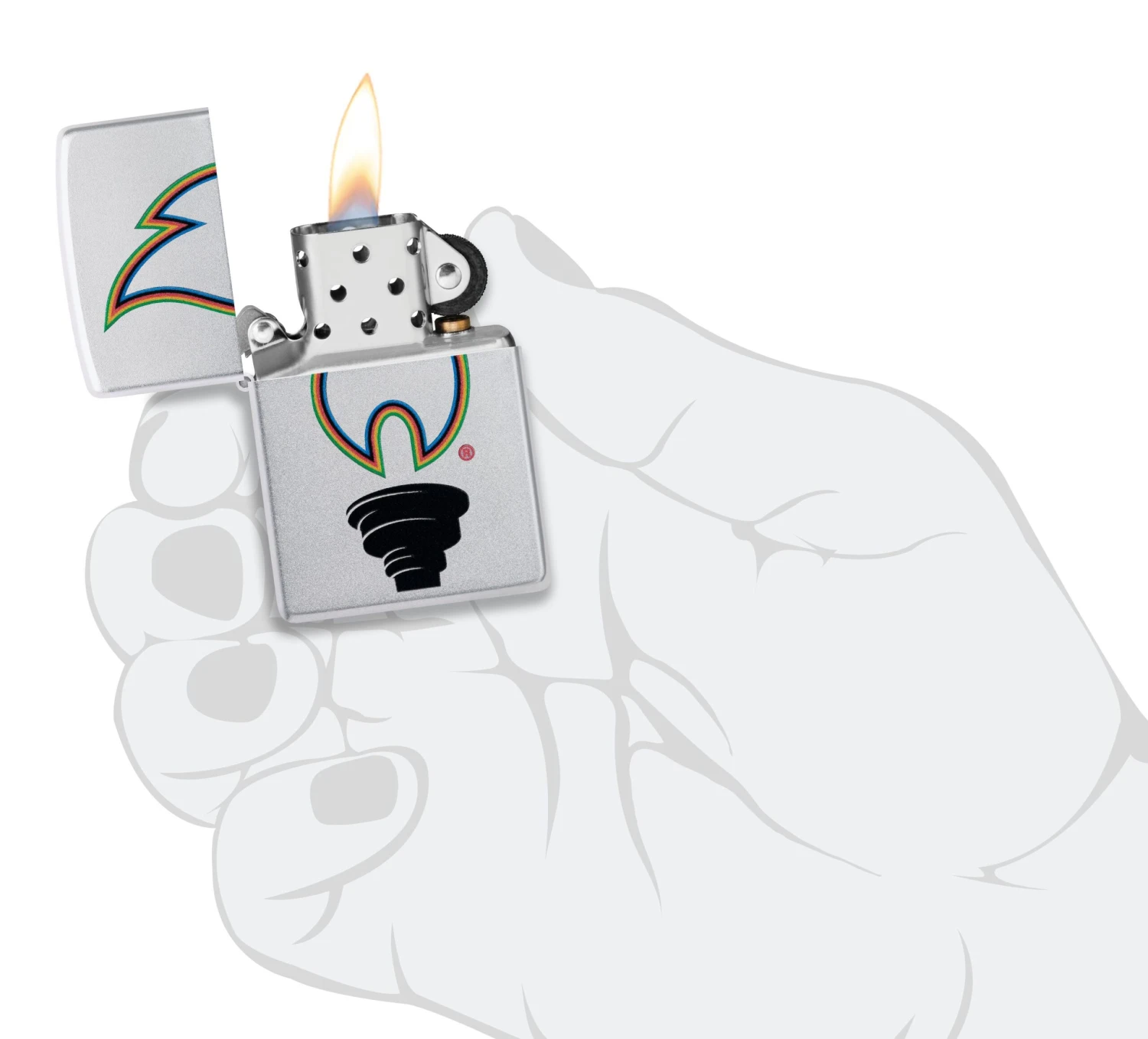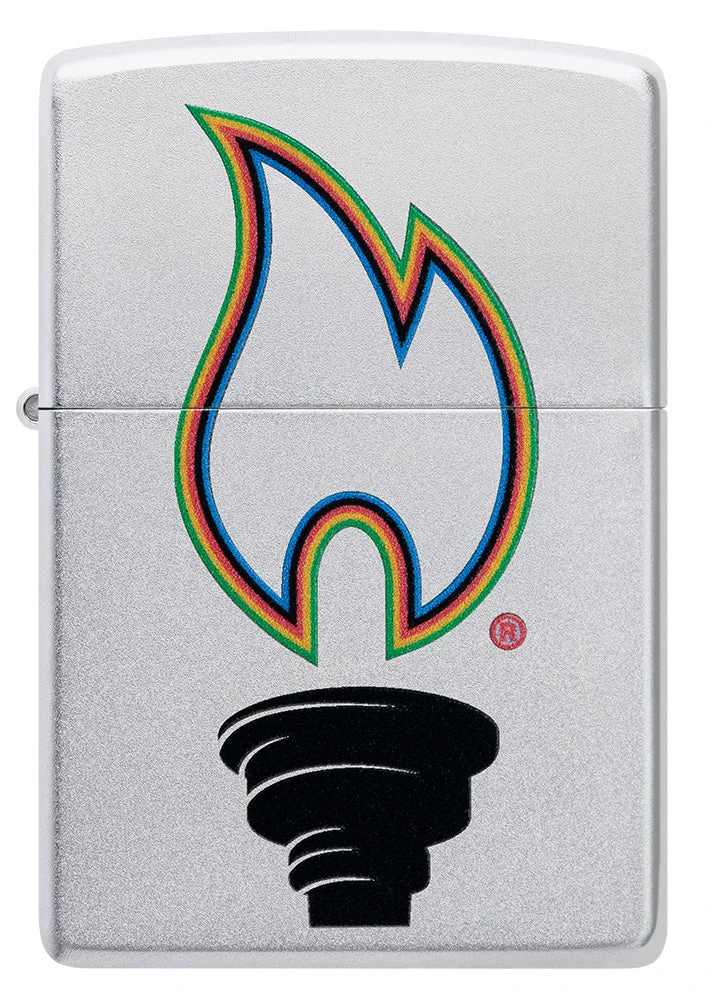 Carry the torch of victory with this Satin Chrome lighter. A multicolour Zippo flame icon burns brightly atop a bold torch in the vibrant Color Image design.Â
