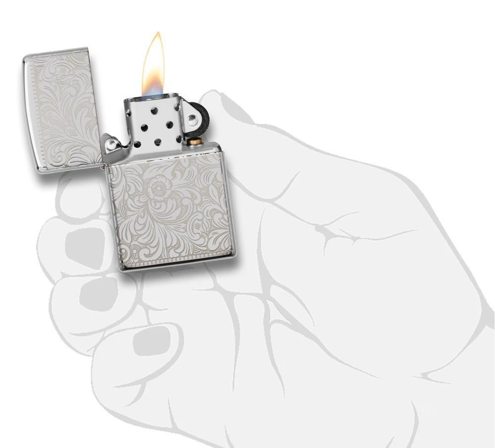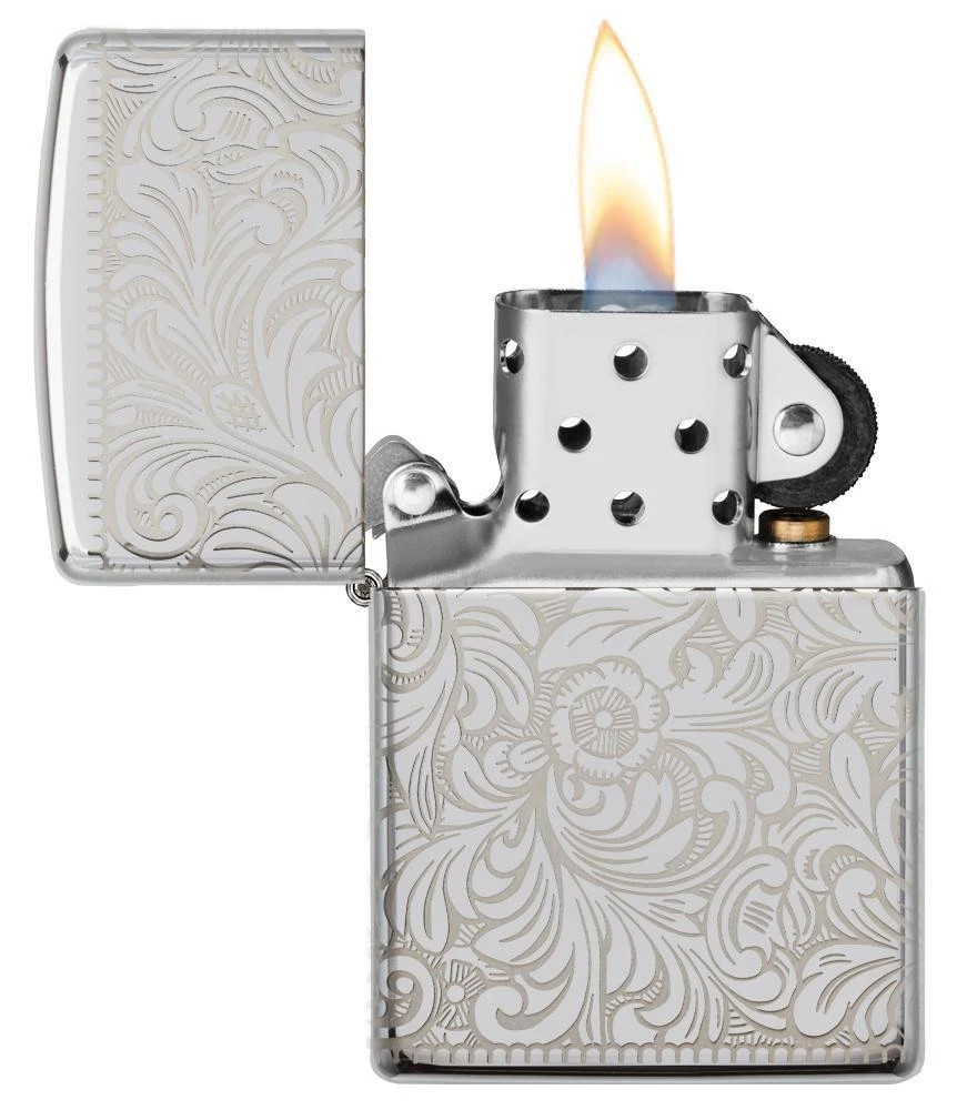 Introduced in 1974, the Venetian® design – originally called the Florentine design, before being renamed in 1976 – displays floral motifs with roots that reach from the Italian Renaissance all the way back to the beginnings of Western Civilization’s art. In celebration of this timeless design, Zippo has recreated this globally appealing art using a trio of luxury design methods: 360° MultiCut, epoxy inlay, and debuting Zippo’s newest design process – laser 360° laser engraving to envelop this lighter in classic beauty. Comes packaged in a gift box. For optimal performance, fill with Zippo lighter fuel.