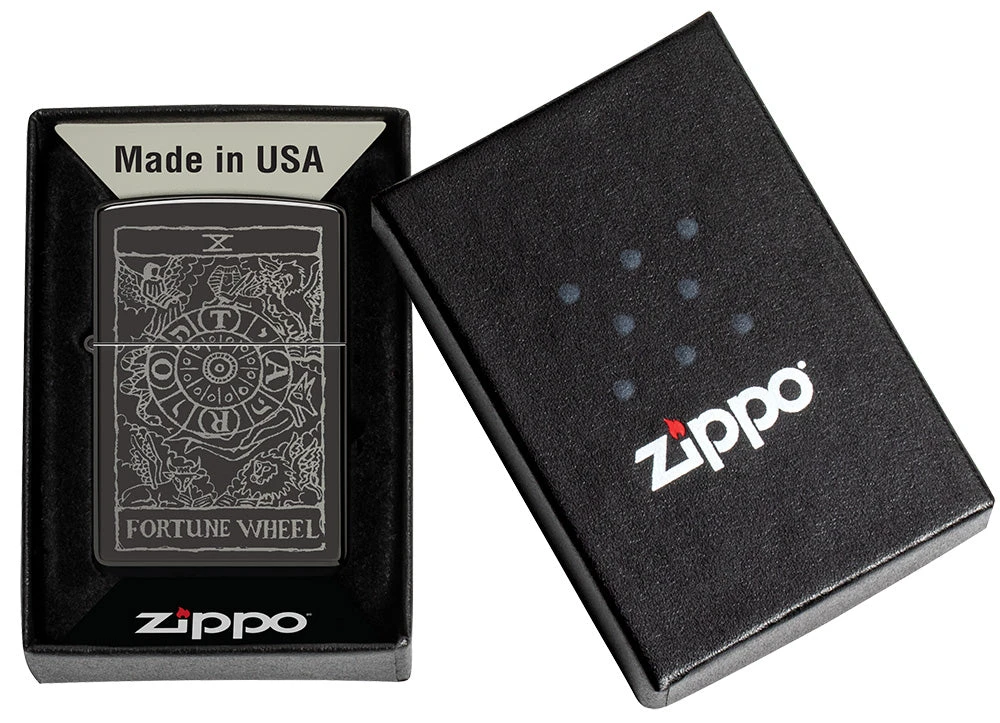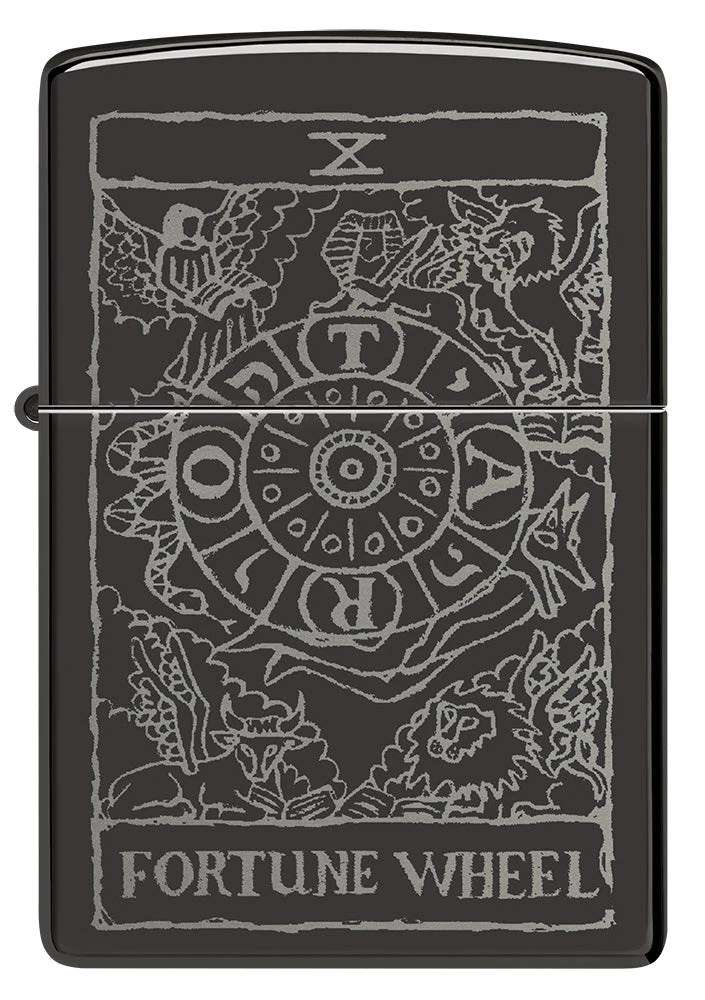 This classic High Polish Black lighter features a mysterious Photo Image design inspired by the Wheel of Fortune tarot card.