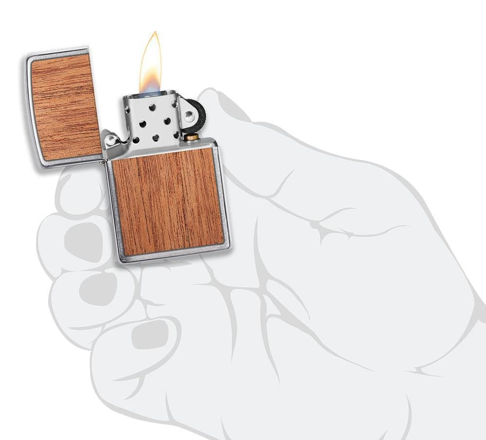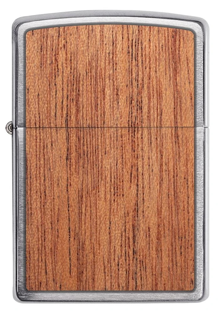 BUY ONE. PLANT ONE.® It’s That Simple. Zippo, in partnership with WOODCHUCK USA, and their Buy One. Plant One.® program, will plant one tree for every lighter sold. These lighters are created using laser-cut emblem designs, made from 100% real wood, that will help restore and protect the forests of the world. Consumers can use the special code in each box to learn where their trees are planted. This Brushed Chrome lighter features a two-sided mahogany emblem which may feature variations of streaks of blond wood intermixed with deeper tones making each lighter unique. Comes packaged in a gift box. For optimal performance, fill with Zippo lighter fuel.