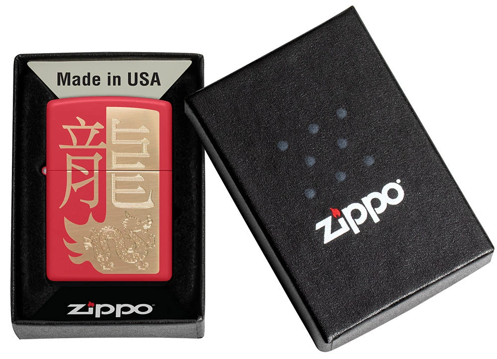 Ring in the Year of the Dragon in 2024 with this stunning Red Matte lighter. Symbolizing power, honor and success, the mighty dragon appears beneath its traditional Chinese character in luxurious brass tones using both our Auto Engrave and Laser Engrave processes and is sure to bring confidence and protection throughout the year.Â