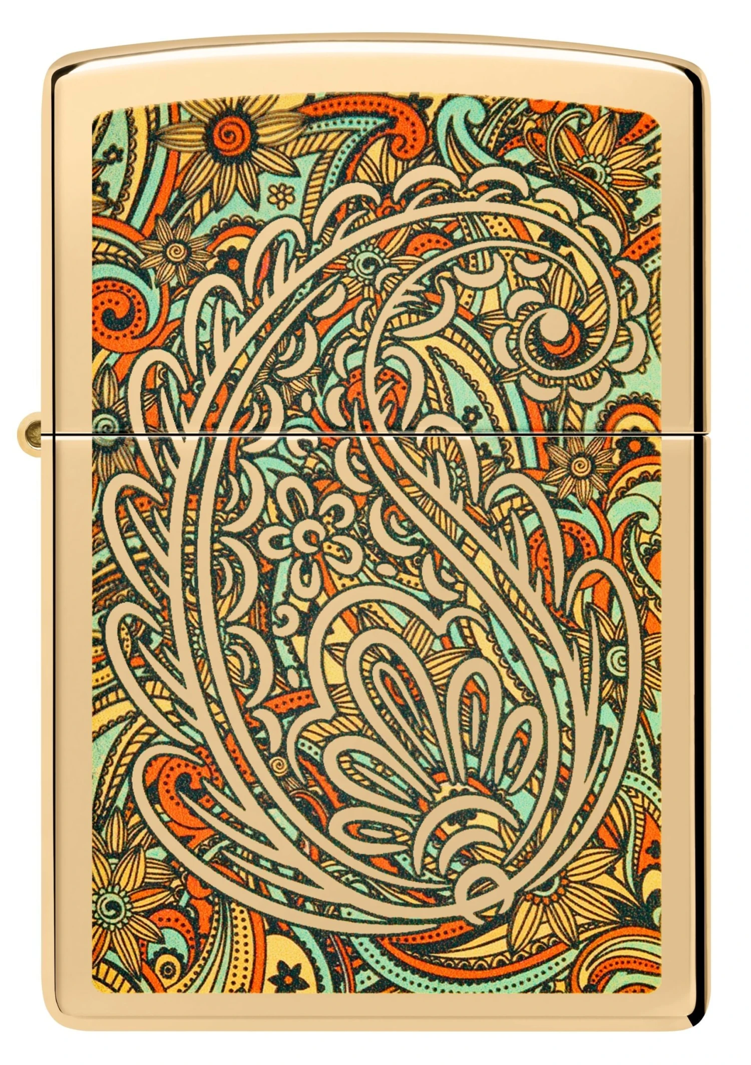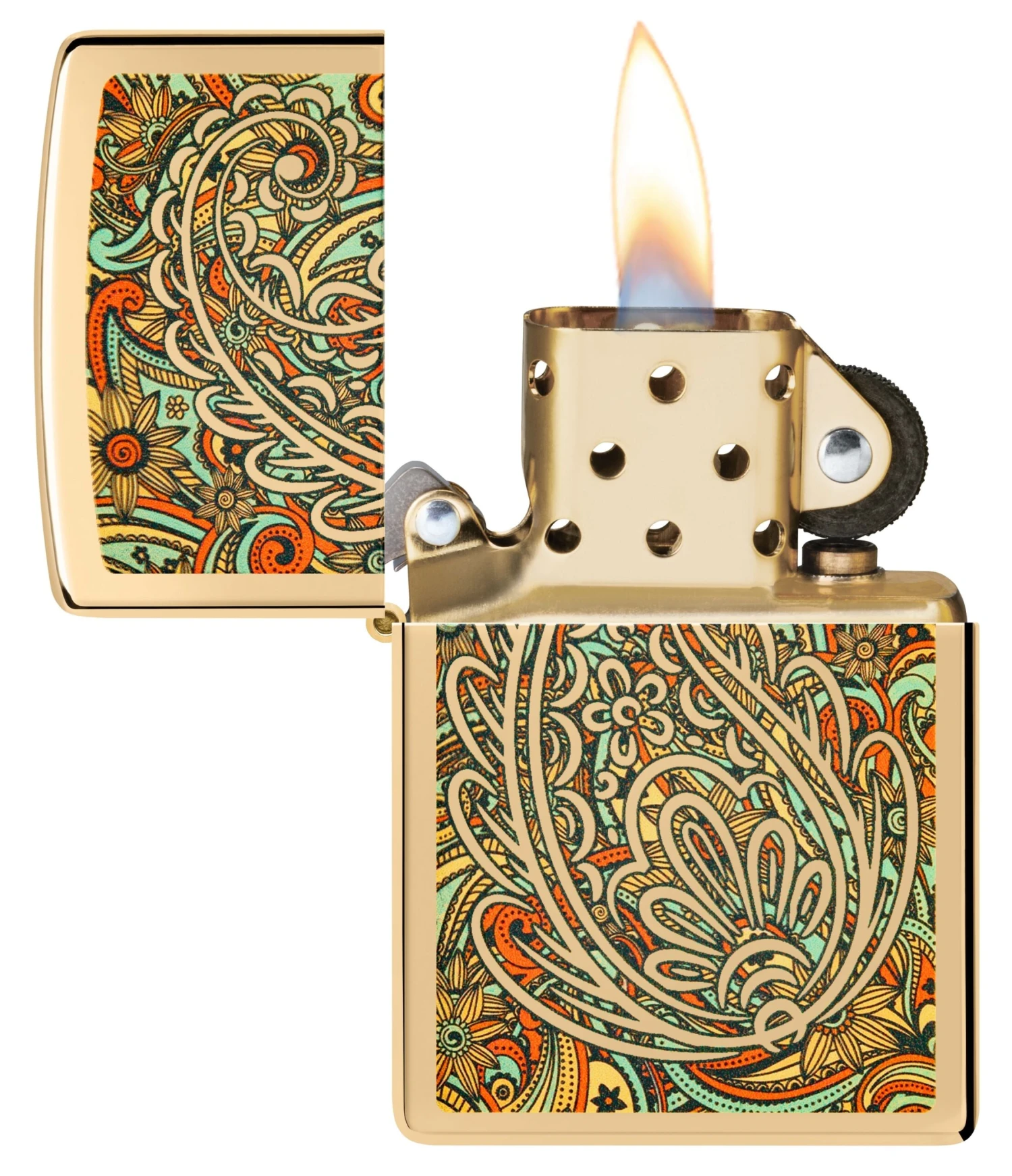 A soothing zentangle is flawlessly captured on this classic High Polish Brass lighter in a mesmerizing Fusion design.